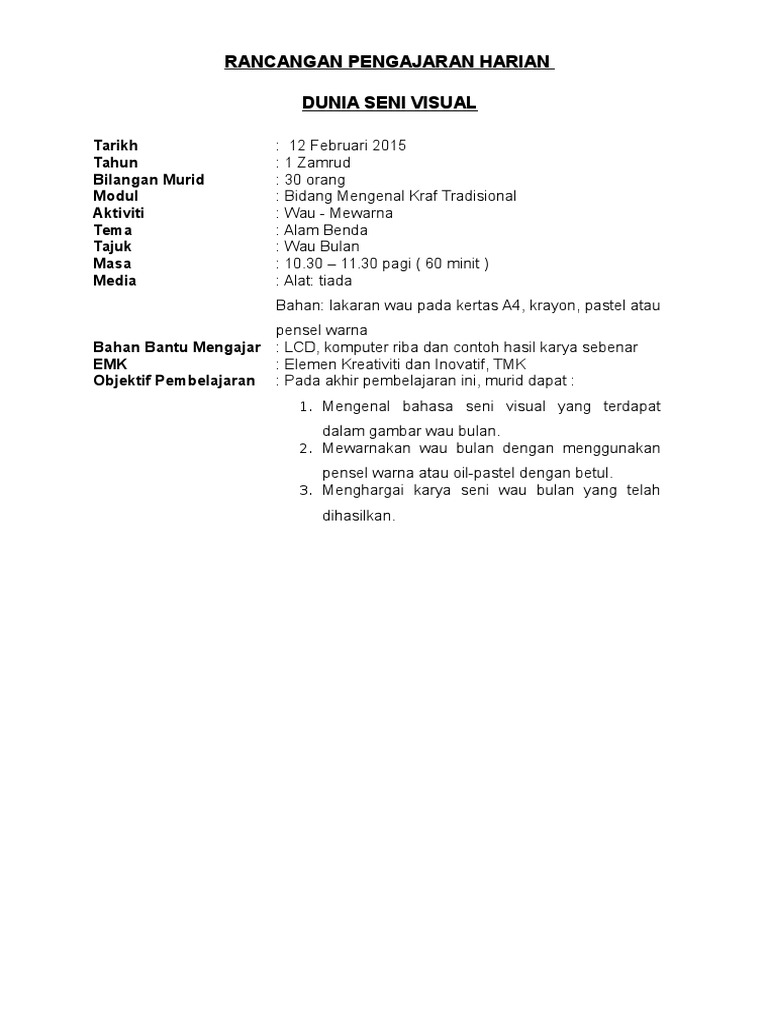 Rph Kesenian Komponen Seni Visual Tahun 1 from imgv2-2-f.scribdassets.com Mula mengikuti sukan olahraga pada tahun 1977.pada tahun 1978 saya menjadi olahragawan majlis sukan tahunan sekolahsekolah kebangsaan lohan. Antara perkara yang mesti dilakukan oleh seseorang yang bergelar guru pada setiap hari adalah pastinya menyediakan rancangan pengajaran harian. 100 meter = johan,200 meter = johan,lompat jauh = johan,4 x 100 meter = johan dan 4 x 400 meter = johan.pada masa itu hadiah. Capan 1.1 bahasa seni visual 2.1 kemahiran seni visual 3.1 penghasilan karya kreatif 4.1 menghayati karya seni. Rph pendidikan kesenian tahun 1. Mungkin sudah banyak orang yang sudah mengetahuinya, namun bagi kamu yang belum tahu silahkan simak. Rph pendidikan kesenian tahun 1 adalah rancangan pengajaran harian yang perlu disediakan lebih awal oleh guru sebelum menjalankan sesi pegajaran dan pembelajaran.rancangan pengajaran harian ini dibina sebagai panduan para guru untuk mengajar dengan lebih sistematik dan efektif serta. >> rph dibuat dalam format softcopy microsoft word untuk memudahkan anda edit mengikut kesesuaian anda.